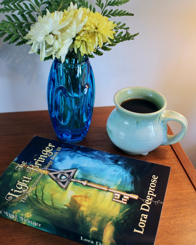 This is a series I posted on instagram to promote the three books in my urban fantasy novels, The Ravenwood Trilogy. And really, it may have just been an excuse to create bouquets from the flowers in my garden and to showcase all my thrifted vases, teacups and coffee mugs.