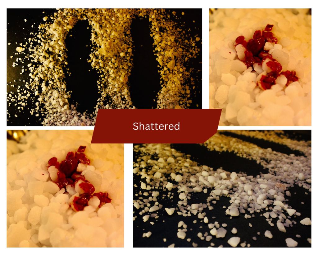 “Lizzie stood motionless in the sea of opaline glass. Her hand started to bleed again, soaking the bandana and silently dripping scarlet beads onto the shattered glass on the floor.”